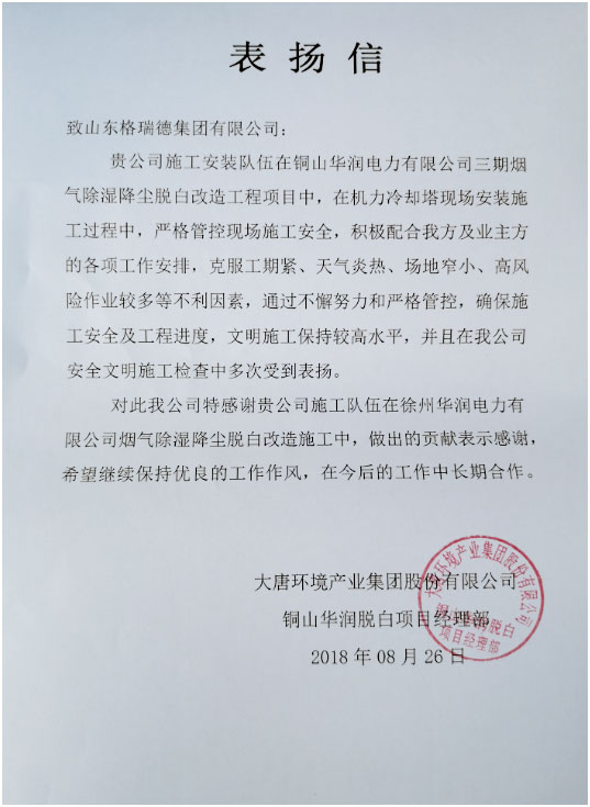 山東格瑞德集團有限公司為徐州華潤電力有限公司安裝節(jié)能型鋼結構卻塔,在徐州華潤電力有限公司工程中,山東格瑞德集團有限公司全程參與施工過程。格瑞德一直秉承著“質量管理零失誤、產(chǎn)品質量零缺陷”的理念,在產(chǎn)品制造上精益求精。此次為徐州華潤電力有限公司安裝大型鋼結構卻塔,能夠充分有效地冷卻設備,保障發(fā)電設備高效穩(wěn)定地運行。
