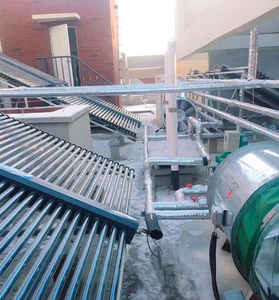 技術(shù)要求:該項(xiàng)目熱水系統(tǒng)以太陽能供熱水為主,共采用格瑞德60支(φ47*1.6)的集熱器189組,集熱器面積約1360平方,約11340支真空管,每棟樓均采用真空管集熱器、不銹鋼組合式水箱、控制柜、循環(huán)泵等組成太陽能熱水系統(tǒng)來供應(yīng)熱水。