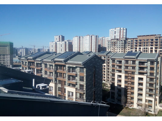 采用太陽(yáng)能集中集熱分戶換熱系統(tǒng),太陽(yáng)能集熱器集中安裝在坡屋面上,控制系統(tǒng)安裝在水箱間內(nèi),每戶一臺(tái)60L太陽(yáng)能換熱水箱、并帶有輔助電加熱,由太陽(yáng)能集中集熱并通過(guò)傳熱介質(zhì)給每戶水箱加熱,同時(shí)電加熱與太陽(yáng)能互補(bǔ),滿足用戶的熱水需求。