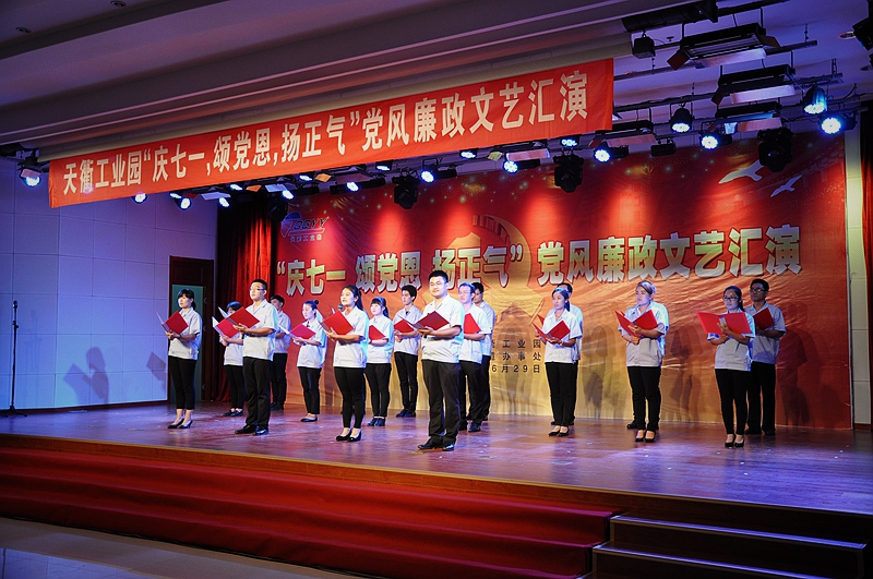 6月29日晚,天衢工業(yè)園“慶七一,頌黨恩,揚正氣”黨風(fēng)廉政文藝匯演精彩上演,德城區(qū)委常委、紀委書記王玉成,德城區(qū)委常委、宣傳部部長駱曉東,德城區(qū)紀委常務(wù)副書記、監(jiān)察局長吳海蓉等領(lǐng)導(dǎo)出席,天衢工業(yè)園全體機關(guān)干部、社區(qū)工作人員、轄區(qū)學(xué)校和企業(yè)代表等近400人觀看演出。