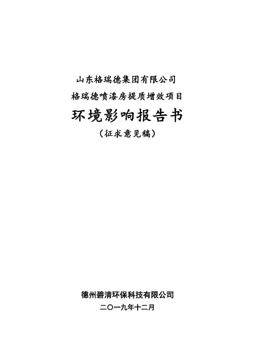格瑞德噴漆房提質(zhì)增效項目 山東格瑞德集團有限公司 格瑞德噴漆房提質(zhì)增效項目 環(huán)境影響報告書