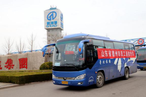 為推進(jìn)集團(tuán)有序復(fù)工,2月27日,帶有“冀魯一家親,攜手戰(zhàn)疫情”標(biāo)識(shí)的兩輛中巴車和格瑞德集團(tuán)兩輛公車從格瑞德集團(tuán)出發(fā),直奔河北省吳橋縣,專程接格瑞德集團(tuán)河北籍21名員工返崗上班,切實(shí)實(shí)現(xiàn)了“點(diǎn)對(duì)點(diǎn)、家到廠”定制化包車返崗接送服務(wù)。