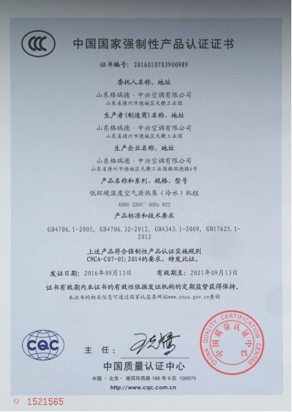 近日,主機公司生產(chǎn)的AR8H、 AR15H低環(huán)境溫度空氣源熱泵(冷水)機組通過國家權(quán)威檢測機構(gòu)檢測,并榮獲CCC認(rèn)證證書。 該單元機組獲得CCC認(rèn)證,充分體現(xiàn)了主機公司的技術(shù)設(shè)計、生產(chǎn)加工和質(zhì)量管控能力。此類機組適用于國家推行的“煤改電”項目,公司可積極參與全國各地“煤改電”項目的投標(biāo)。