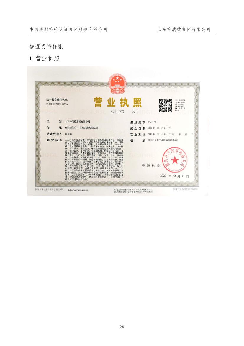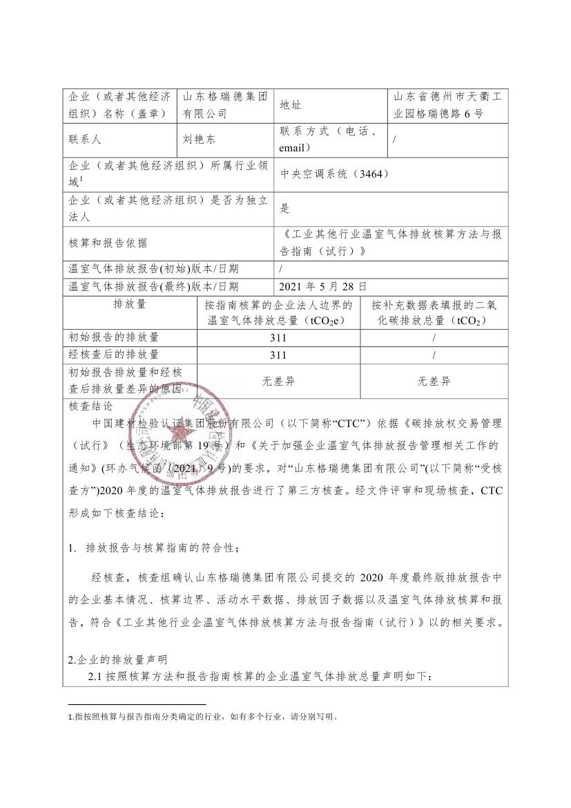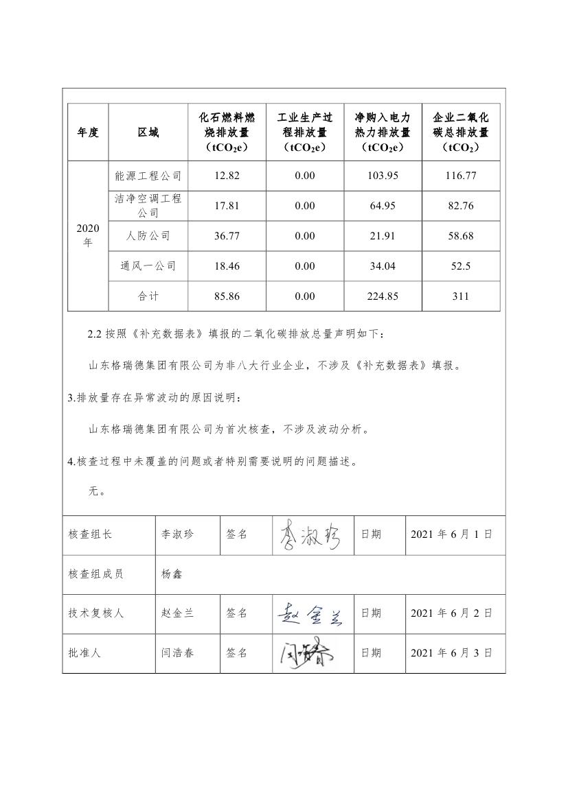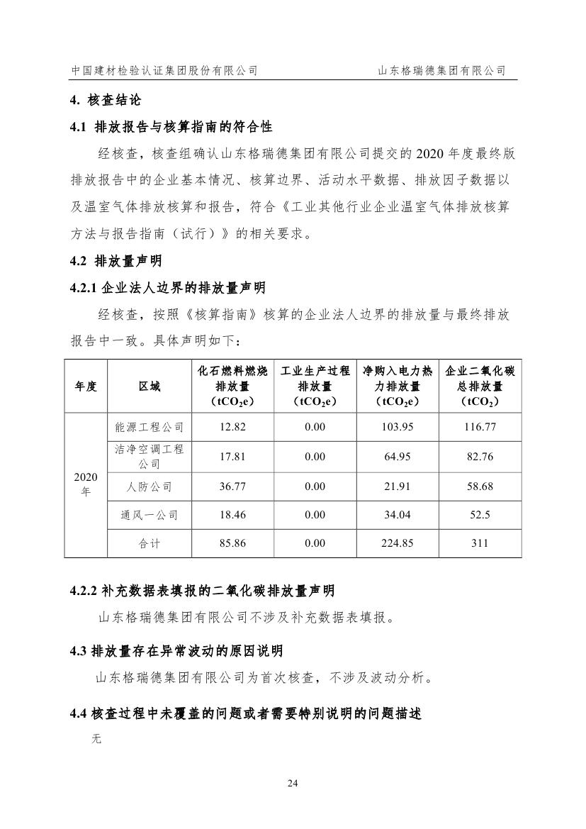山東格瑞德集團有限公司-核查報告-2020年度