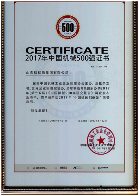8月22日,由中國(guó)機(jī)械工業(yè)企業(yè)管理協(xié)會(huì)主辦,《總裁》雜志、世界企業(yè)實(shí)驗(yàn)室、全球品牌研究院協(xié)會(huì),中國(guó)機(jī)械網(wǎng)承辦的2017年(第十五屆)“中國(guó)機(jī)械500強(qiáng)暨中國(guó)機(jī)械品牌100強(qiáng)研究報(bào)告”發(fā)布會(huì),在北京東方君悅大酒店隆重召開(kāi)。我公司入選《中國(guó)機(jī)械500強(qiáng)》企業(yè),并受邀參加了此次會(huì)議。
