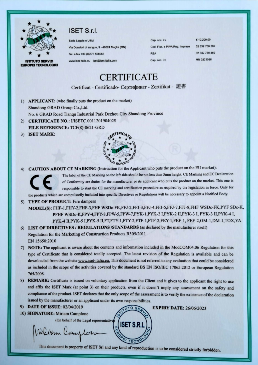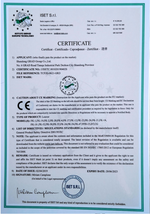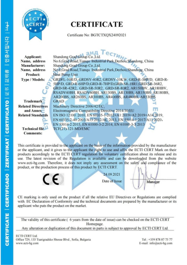 格瑞德集團(tuán)具有獨(dú)立的貨物進(jìn)出口資質(zhì),可自主報(bào)關(guān)和報(bào)檢。具有對(duì)外承包工程資質(zhì)證書(shū),并順利獲得了中央空調(diào)末端及復(fù)合材料產(chǎn)品的AHRI、CE、SASO、ROHS等資質(zhì)認(rèn)證。