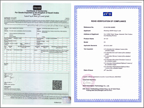 水箱SASO和風(fēng)口ROHS證書(shū)