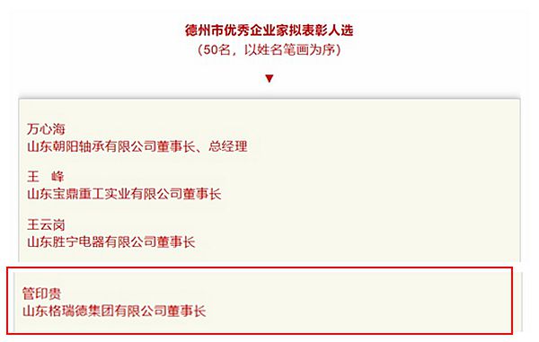 為弘揚(yáng)企業(yè)家精神,激勵(lì)企業(yè)家開(kāi)拓進(jìn)取、創(chuàng)新創(chuàng)業(yè),市委、市政府決定評(píng)選表彰一批“德州市優(yōu)秀企業(yè)家”。近日,集團(tuán)董事長(zhǎng)管印貴先生成功入選德州市50名優(yōu)秀企業(yè)家名單。