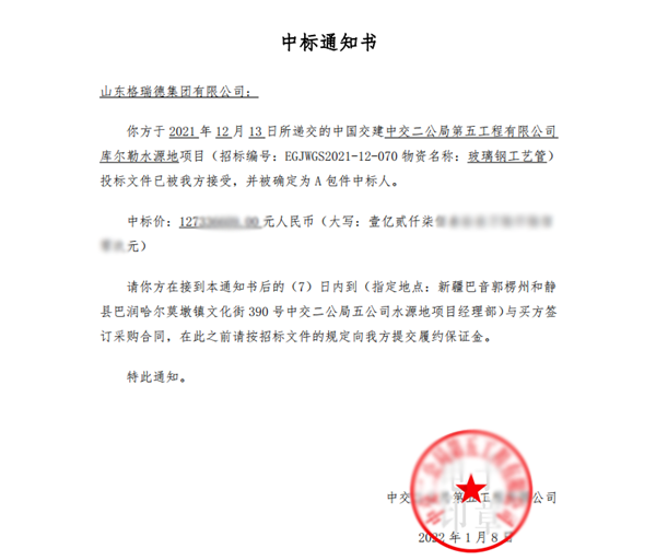 近日,格瑞德集團(tuán)成功中標(biāo)中交二公局庫(kù)爾勒第二水源地項(xiàng)目,中標(biāo)金額近1.3億元。該項(xiàng)目為格瑞德集團(tuán)2022年業(yè)務(wù)開(kāi)展奠定了良好的基礎(chǔ),注入了強(qiáng)有力的動(dòng)力。