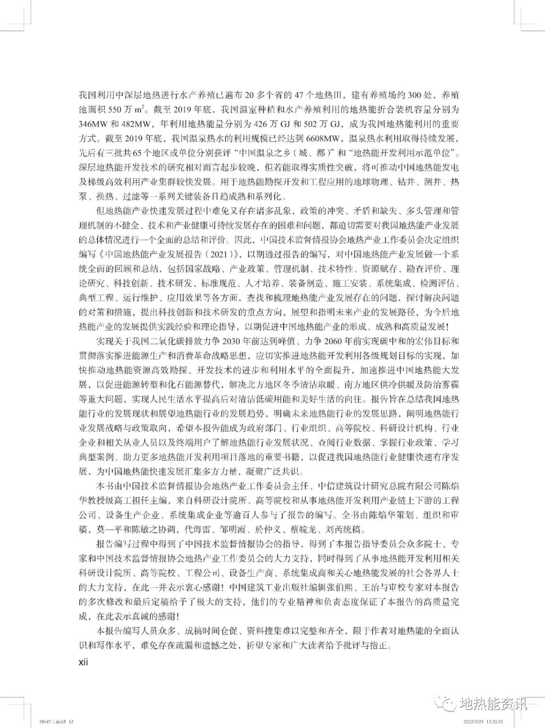 《中國地?zé)崮墚a(chǎn)業(yè)發(fā)展報告(2021)》對我國地?zé)崮墚a(chǎn)業(yè)發(fā)展做了較為系統(tǒng)全面的回顧和總結(jié),包括國家戰(zhàn)略、產(chǎn)業(yè)政策、管理機(jī)制、技術(shù)特性、資源賦存、勘查評價、理論研究、科技創(chuàng)新、技術(shù)研發(fā)、標(biāo)準(zhǔn)規(guī)范、人才培養(yǎng)、裝備制造、施工安裝、系統(tǒng)集成、檢測評估、典型工程、運行維護(hù)、應(yīng)用效果等各方面,查找和梳理地?zé)崮墚a(chǎn)業(yè)發(fā)展存在的問題,探討解決問題的對策和措施,提出科技創(chuàng)新和技術(shù)研發(fā)的重點方向,展望和指明未來產(chǎn)業(yè)的發(fā)展路徑,為今后地?zé)崮墚a(chǎn)業(yè)的發(fā)展提供實踐經(jīng)驗和理論指導(dǎo),以期促進(jìn)中國地?zé)崮墚a(chǎn)業(yè)的形成、成熟和高質(zhì)量發(fā)展。
