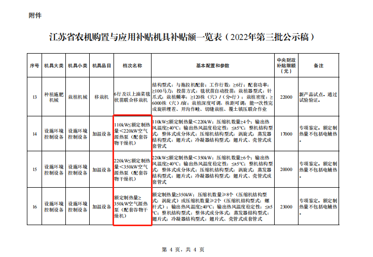 根據(jù)農(nóng)業(yè)農(nóng)村部、財政部農(nóng)機(jī)購置與應(yīng)用補(bǔ)貼政策和推廣大豆玉米帶狀復(fù)合種植、秋冬種油菜擴(kuò)種等要求,經(jīng)專家會議研究論證,我廳對大豆玉米帶狀復(fù)合種植植保機(jī)、大豆收獲機(jī),油菜移栽機(jī)和空氣源熱泵(配套谷物干燥機(jī))制定了《江蘇省農(nóng)機(jī)購置與應(yīng)用補(bǔ)貼機(jī)具補(bǔ)貼額一覽表(2022年第三批公示稿)》(見附件),現(xiàn)予以公示。
