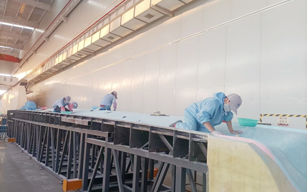 該項目是格瑞德集團首次從模具鋼架加工開始,全過程制作葉片陽模模具。集團接到葉片陽模項目訂單后,按照甲方技術(shù)質(zhì)量標準參數(shù)要求,首先對原材料供應商物料的技術(shù)質(zhì)量等參數(shù)能否達標進行評定,優(yōu)中選優(yōu),確保采購物料各項指標達標;技術(shù)聯(lián)合生產(chǎn)利用CNC設備,從鋼架焊接、激光測量鋼架型面、糊制、鋪設伐木等工序加工制作成品,并順利完成制作。