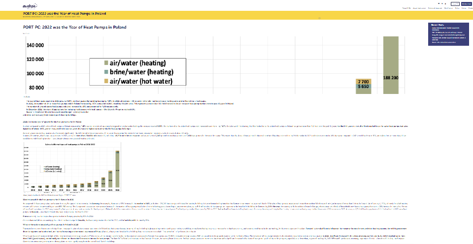 2022年與2021相比,波蘭熱泵的總銷售額增長了120%。在集中供暖設備方面,增長率達到130%??諝?水熱泵銷售量增長率137%。值得一提的是,在過去10年中,波蘭的空氣-水熱泵市場增長了100多倍。連續(xù)五年,波蘭空氣-水熱泵市場的銷售動態(tài)同比增長約100%,這是過去兩年中歐洲熱泵市場最高的銷售動態(tài)。