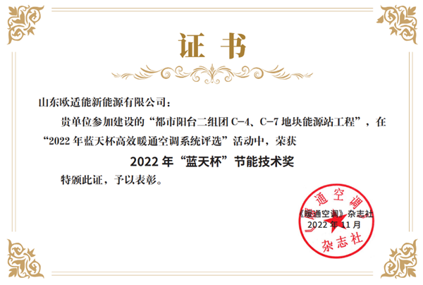 2022年12月9日,素有暖通行業(yè)“奧斯卡”之稱的“藍(lán)天杯”高效暖通空調(diào)系統(tǒng)評(píng)選結(jié)果正式揭曉,由格瑞德集團(tuán)助力甲方單位山東歐適能新能源有限公司榮獲全國(guó)2022年“藍(lán)天杯”節(jié)能技術(shù)獎(jiǎng),開(kāi)啟機(jī)電安裝工程的智能、高效、安全、綠色新篇章。