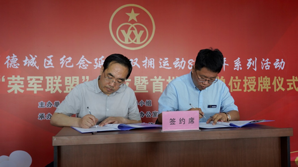 5月31日,為紀念延安雙擁運動80周年,德城區(qū)雙擁工作領導小組辦公室、區(qū)退役軍人事務局、天衢街道辦事處、山東格瑞德集團有限公司聯合舉辦了德城區(qū)“榮軍聯盟”成立暨首批成員單位授牌儀式,德城區(qū)政府副區(qū)長鄭虎同志主持,德州市退役軍人局副局長王國琦同志、德城區(qū)人武部上校部長趙峰同志、德城區(qū)退役軍人局局長呂良緣同志等出席,格瑞德集團執(zhí)行總裁管志廣受邀參加簽約授牌儀式。