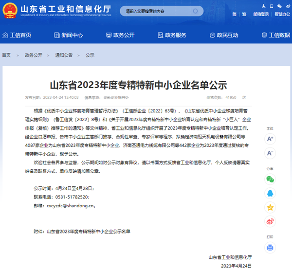近日,山東省工業(yè)和信息化廳下發(fā)通知,對山東省2023年度專精特新中小企業(yè)名單進行公示。記者獲悉,4087家企業(yè)入選山東省2023年度專精特新中小企業(yè),442家企業(yè)入選2023年度通過復核的專精特新中小企業(yè)。2023年4月24日,山東格瑞德環(huán)保科技有限公司上榜山東省2023年度專精特新中小企業(yè)公示名單。