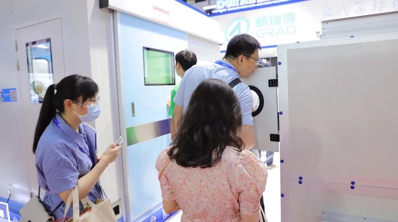 集團(tuán)潔凈樣板間、凈化組合式空調(diào)機(jī)組及直膨式凈化空氣處理機(jī)組獲得現(xiàn)場(chǎng)觀眾一致好評(píng)。格瑞德凈化展示樣板間由凈化彩鋼復(fù)合夾芯板和凈化密閉門(mén)窗組成,現(xiàn)場(chǎng)安裝方便快捷,廣泛適用于醫(yī)院、制藥、食品、電子等領(lǐng)域。凈化彩鋼復(fù)合夾芯板是由格瑞德集團(tuán)自主研發(fā)、設(shè)計(jì)、生產(chǎn)的一種加強(qiáng)型的復(fù)合夾芯板,可廣泛用于高科技電子、醫(yī)藥、化工、食品等行業(yè)的凈化房圍護(hù)、吊頂,以及工業(yè)廠房、倉(cāng)庫(kù)、冷庫(kù)、烤爐、空調(diào)器壁板等潔凈領(lǐng)域。