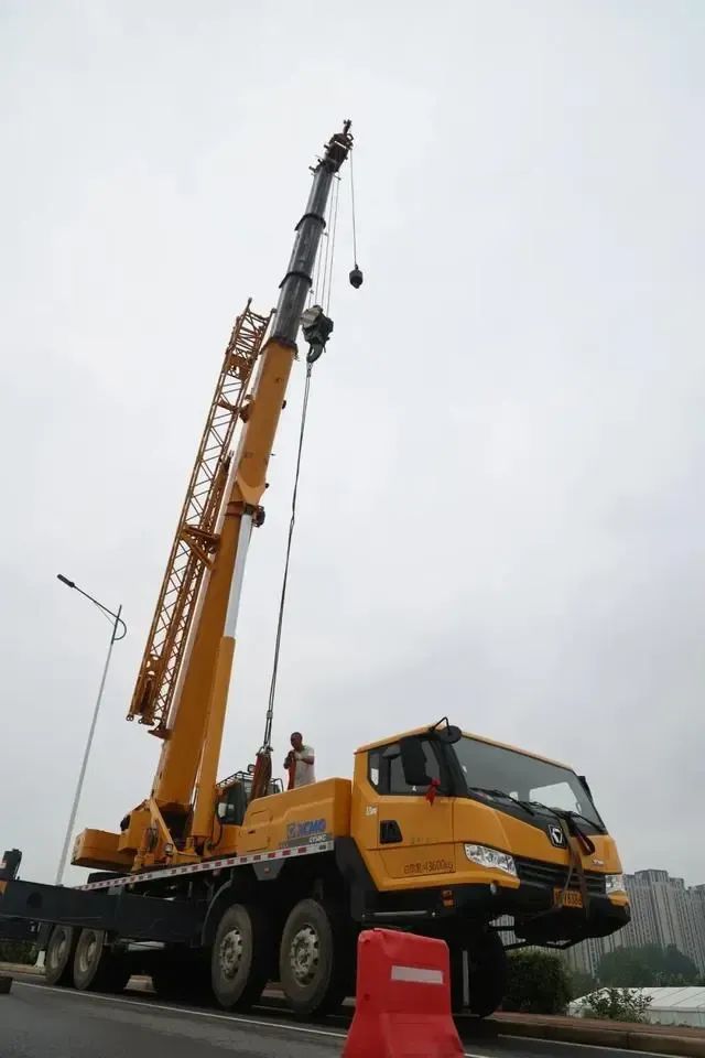 工程車(chē)正在吊裝暖氣管道