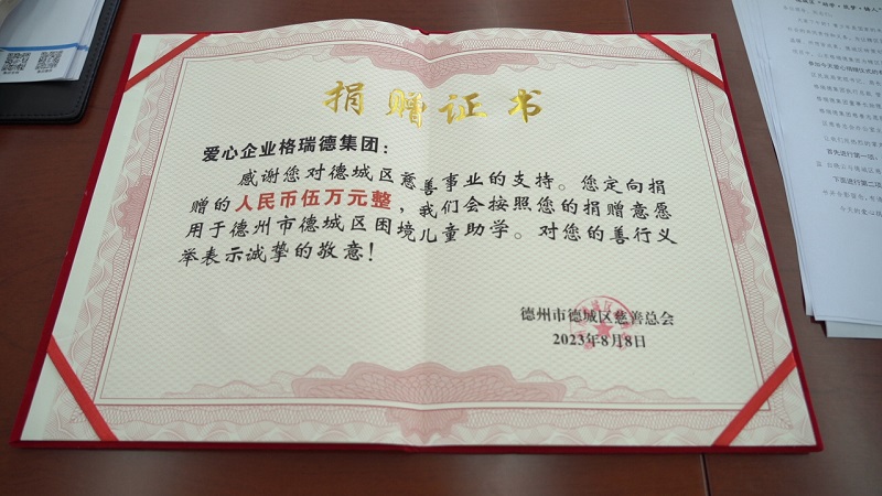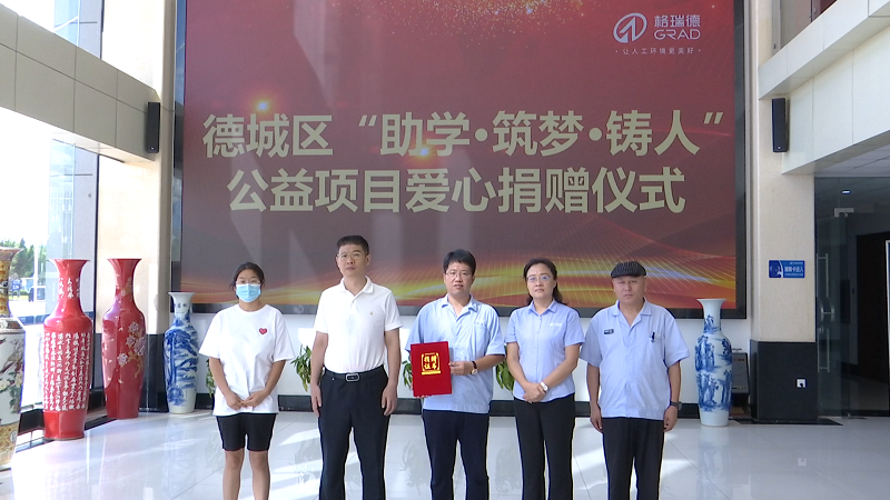為幫助更多困境學(xué)子點(diǎn)亮求學(xué)夢,格瑞德積極參與德城區(qū)“助學(xué)·筑夢·鑄人”公益項(xiàng)目,并捐贈5萬元。
