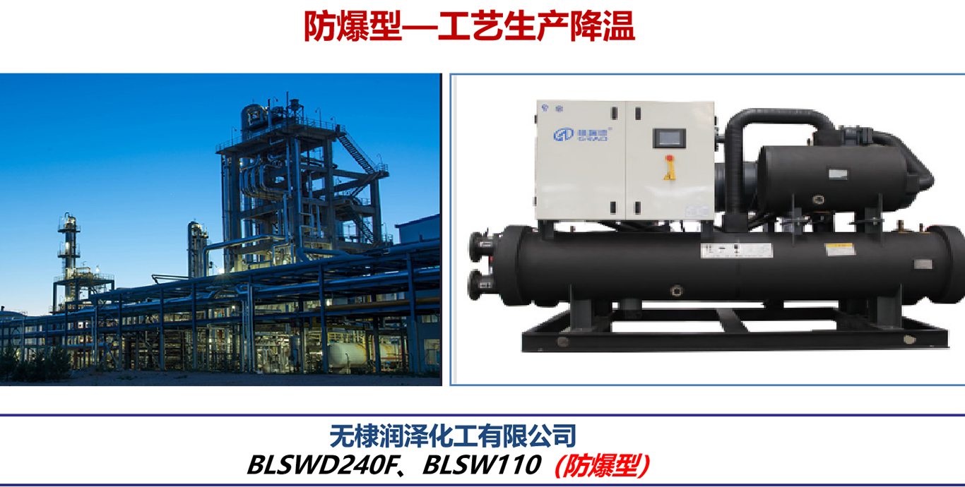低溫防爆機(jī)組冷凍水載冷劑為質(zhì)量溶度55%的乙二醇溶液,使用側(cè)出水溫度低至-30℃,可以提供穩(wěn)定的工藝?yán)渌煌瑫r(shí)采用多項(xiàng)專利技術(shù),保證機(jī)組穩(wěn)定運(yùn)行。