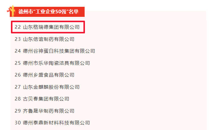 2月,德州市民營(yíng)經(jīng)濟(jì)高質(zhì)量發(fā)展暨優(yōu)化營(yíng)商環(huán)境大會(huì)召開。格瑞德集團(tuán)憑借卓越的企業(yè)實(shí)力和持續(xù)的創(chuàng)新發(fā)展榮登德州市“工業(yè)企業(yè)50強(qiáng)”榜單。