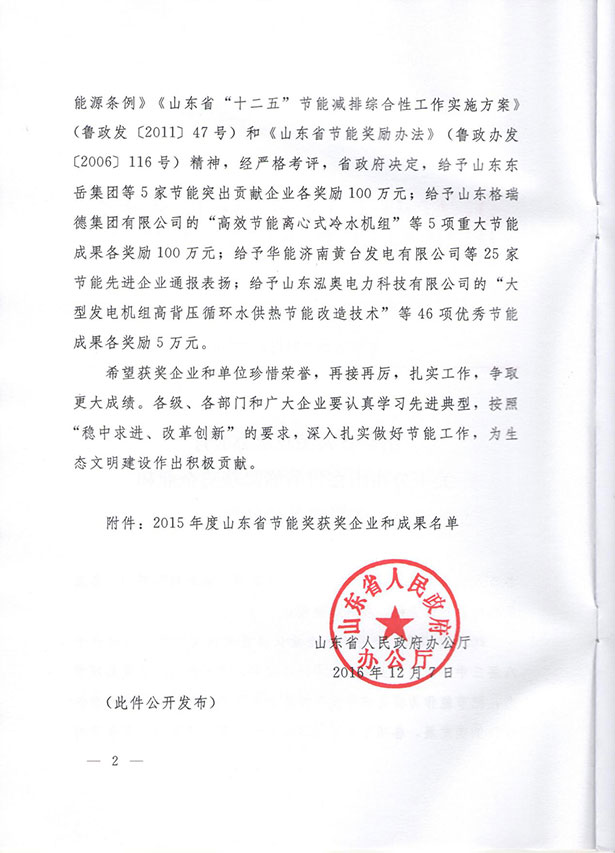 12月12日,山東省經(jīng)濟(jì)和信息化委員會(huì)網(wǎng)站公布了魯政發(fā)字【2016】217號(hào),山東省人民政府辦公廳關(guān)于公布山東省節(jié)能獎(jiǎng)獲獎(jiǎng)企業(yè)和成果名單的通報(bào)。