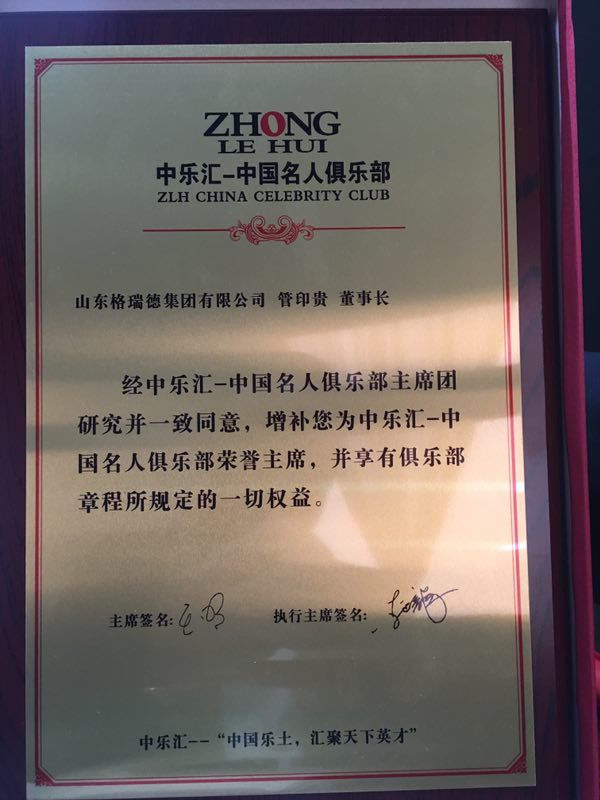 管印貴董事長(zhǎng)被中樂(lè)匯·中國(guó)名人俱樂(lè)部授予“榮譽(yù)主席”的職位。