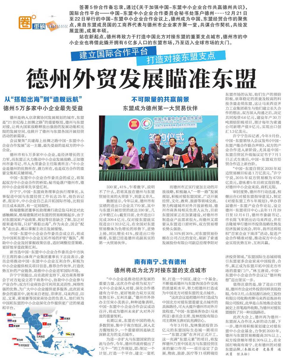 站在新起點(diǎn),德州將致力于打造中國(guó)北方對(duì)接?xùn)|盟的重要支點(diǎn)城市,德州市的中小企業(yè)也將借此撬開擁有6億多人口的東盟市場(chǎng),乃至邁入全球市場(chǎng)的大門。