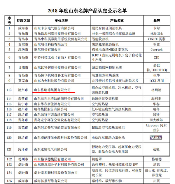 近日,從山東省質(zhì)量評價協(xié)會官網(wǎng)發(fā)布的《關(guān)于公示2018年度山東名牌產(chǎn)品和山東省服務(wù)名牌擬認(rèn)定名單的公告》中獲悉,集團(tuán)生產(chǎn)的組合式空調(diào)機(jī)組、冷水機(jī)組、空氣源熱泵機(jī)組、機(jī)艙罩被認(rèn)定為2018年度“山東名牌”產(chǎn)品。